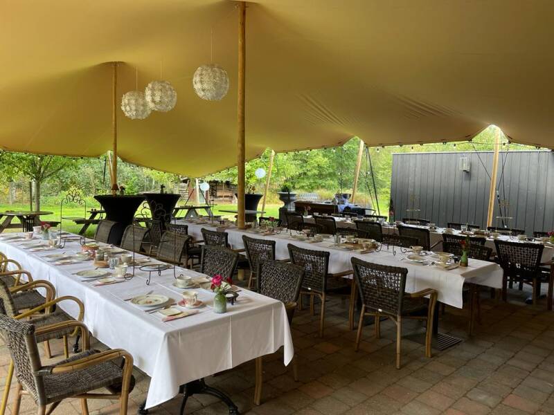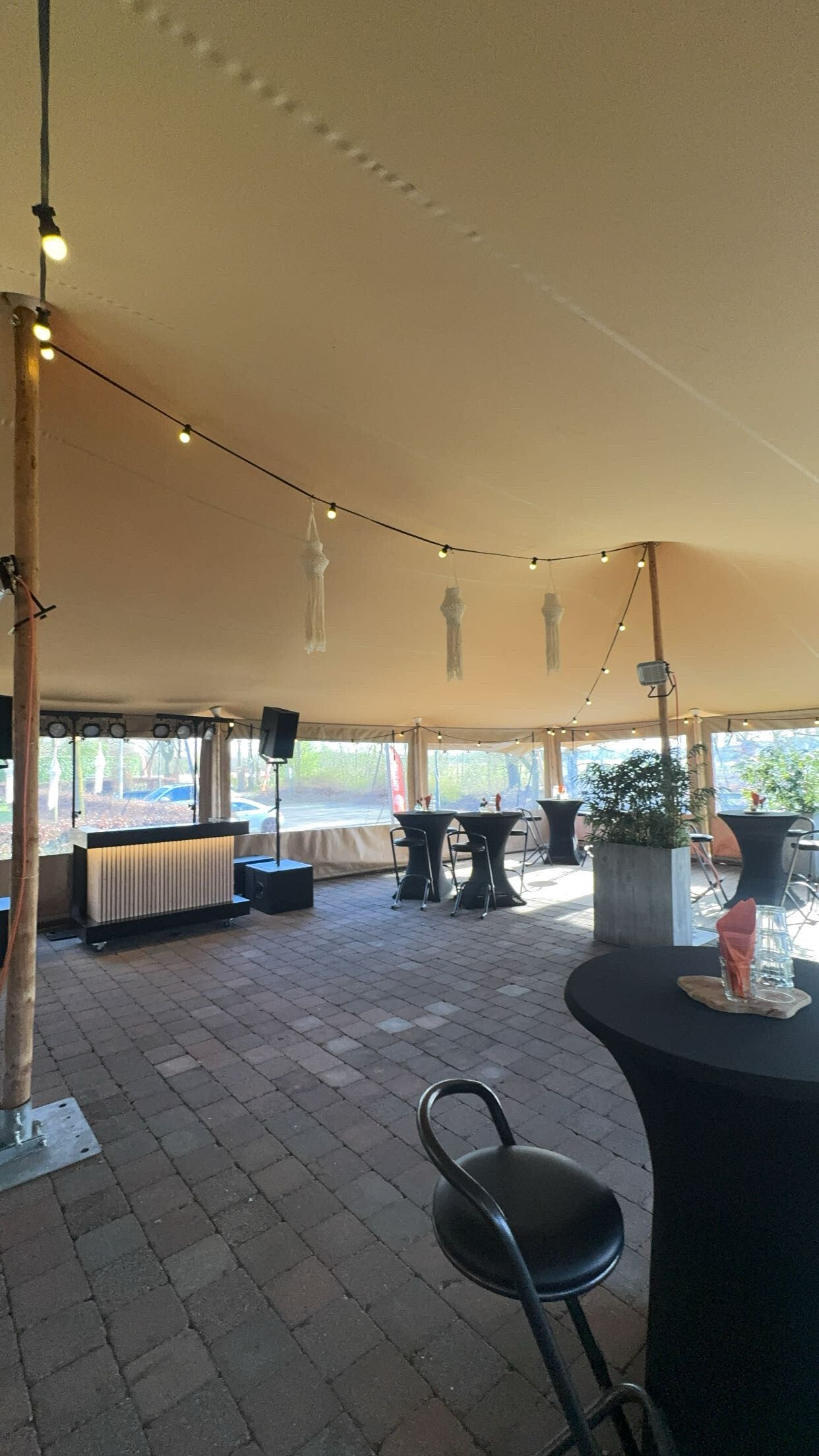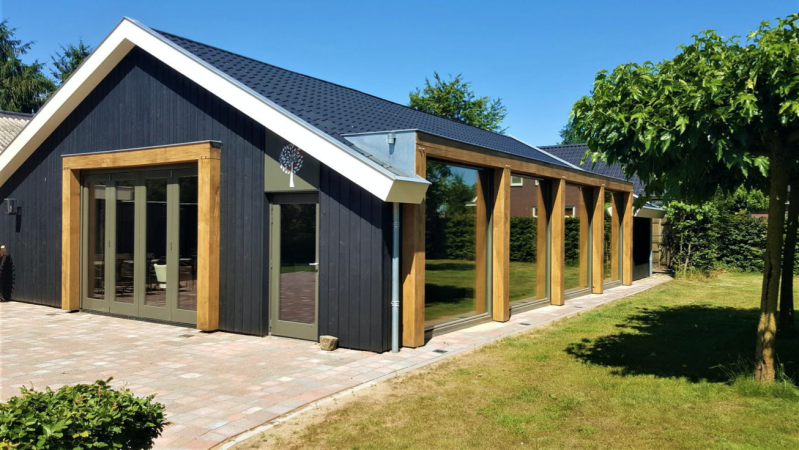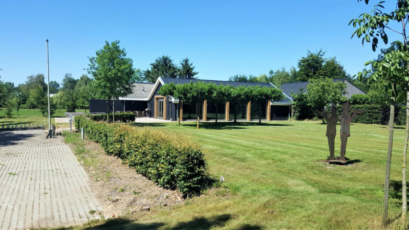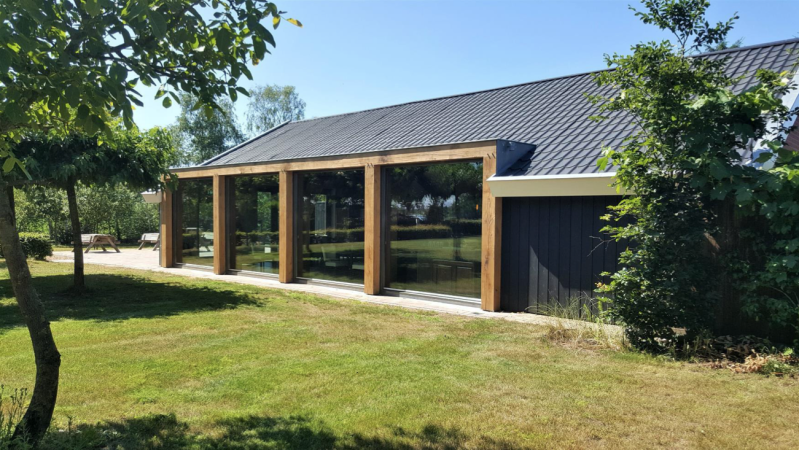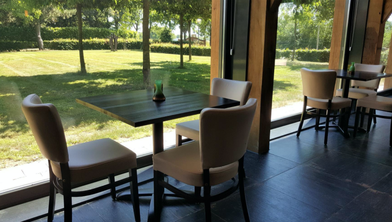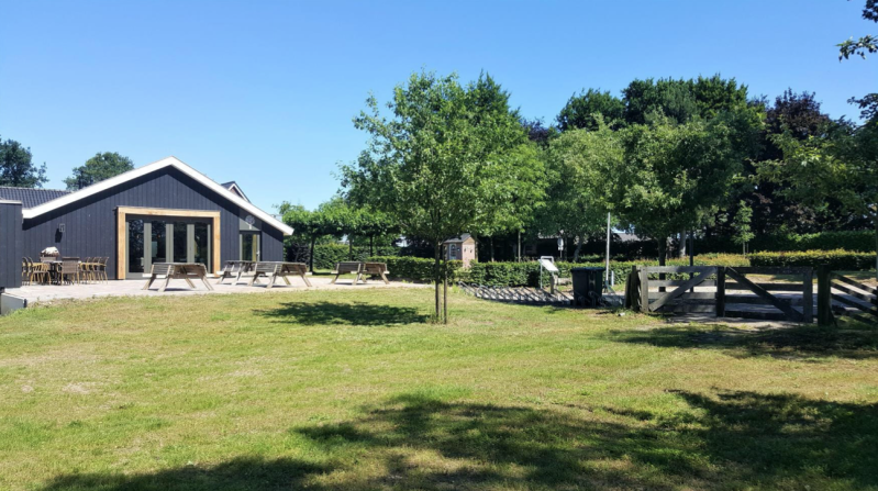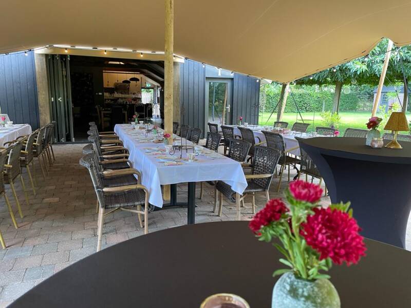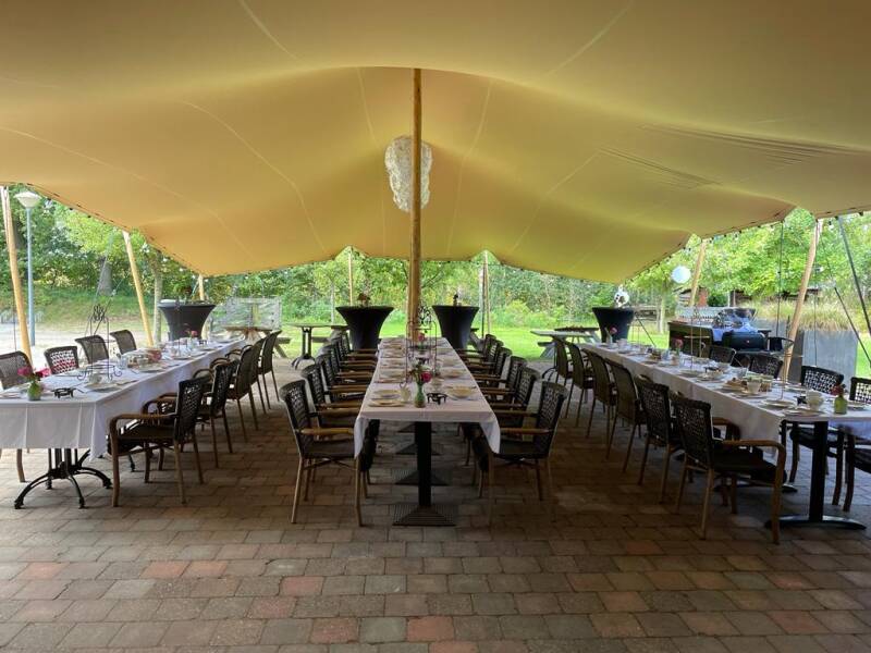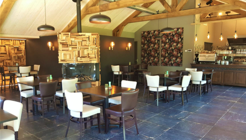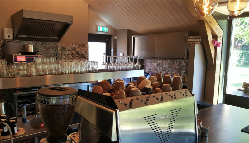Het prachtige, duurzame gebouw staat op een royaal perceel, met eigen parkeervoorzieningen, terras en tuin. Nabij een camping, aan het kruispunt van diverse fietsroutes, kan deze horecagelegenheid voorzien in behoeftes van bedrijven qua vergaderingen, feesten, koffietafel bij uitvaart en bijeenkomsten voor besloten gezelschappen. De inrichting is sfeervol, waarbij vooral natuurlijke materialen zijn gebruikt, de foto’s hieronder spreken voor zich. De grote raampartijen bieden prachtige uitzichten op tuin, terrassen en omgeving. Er is een compleet ingericht ‘open’ keuken aanwezig.
